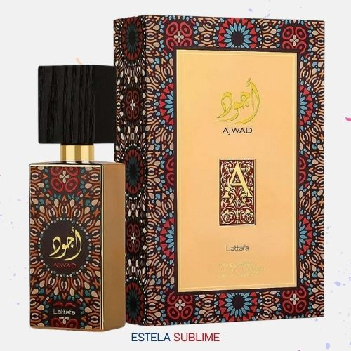 AJWAD DE LATTAFA PERFUMES ES UNA FRAGANCIA DE LA FAMILIA OLFATIVA AMADERADA AROMÁTICA PARA HOMBRES Y MUJERES. AJWAD SE LANZÓ EN 2021. LA NOTA DE SALIDA ES NOTAS AFRUTADAS; LAS NOTAS DE CORAZÓN SON ROSA Y JAZMÍN; LAS NOTAS DE FONDO SON VAINILLA, ALMIZCLE, ÁMBAR Y CEDRO.