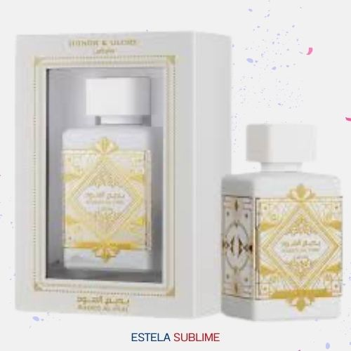BADE'E AL OUD HONOR & GLORY DE LATTAFA PERFUMES ES UNA FRAGANCIA DE LA FAMILIA OLFATIVA PARA HOMBRES Y MUJERES. ESTA FRAGANCIA ES NUEVA. BADE'E AL OUD HONOR & GLORY SE LANZÓ EN 2023. LAS NOTAS DE SALIDA SON PIÑA Y CRÉME BRULÉE; LAS NOTAS DE CORAZÓN SON CANELA, CÚRCUMA (AZAFRÁN DE LA INDIA), PIMIENTA NEGRA Y BENJUÍ; LAS NOTAS DE FONDO SON VAINILLA, SÁNDALO, CACHEMIRA Y MUSGO.