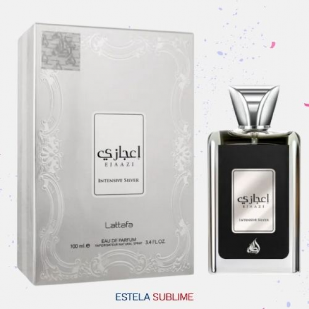 EJAAZI INTENSIVE SILVER DE LATTAFA PERFUMES ES UNA FRAGANCIA DE LA FAMILIA OLFATIVA AROMÁTICA FRUTAL PARA HOMBRES Y MUJERES. EJAAZI INTENSIVE SILVER SE LANZÓ EN 2021. LAS NOTAS DE SALIDA SON MANDARINA Y TORONJA (POMELO); LAS NOTAS DE CORAZÓN SON NOTAS MARINAS Y CEDRO; LAS NOTAS DE FONDO SON ÁMBAR Y MUSGO.