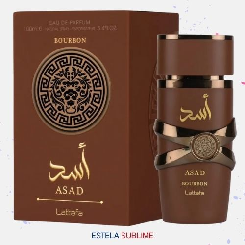 ASAD BOURBON DE LATTAFA PERFUMES ES UNA FRAGANCIA DE LA FAMILIA OLFATIVA ORIENTAL ESPECIADA PARA HOMBRES. ESTA FRAGANCIA ES NUEVA. ASAD BOURBON SE LANZÓ EN 2025. LAS NOTAS DE SALIDA SON LAVANDA, CIRUELA MIRABEL Y PIMIENTA ROSA; LAS NOTAS DE CORAZÓN SON CACAO, NUEZ MOSCADA Y DAVANA; LAS NOTAS DE FONDO SON VAINILLA BOURBON, ÁMBAR Y VETIVER.