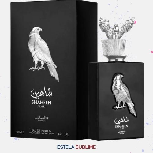 SHAHEEN SILVER DE LATTAFA PERFUMES ES UNA FRAGANCIA DE LA FAMILIA OLFATIVA PARA HOMBRES Y MUJERES. ESTA FRAGANCIA ES NUEVA. SHAHEEN SILVER SE LANZÓ EN 2022. LAS NOTAS DE SALIDA SON BERGAMOTA Y CASIS (GROSELLERO NEGRO); LAS NOTAS DE CORAZÓN SON PACHULÍ Y ROSA; LAS NOTAS DE FONDO SON MUSGO DE ROBLE, ALMIZCLE Y ÁMBAR.
