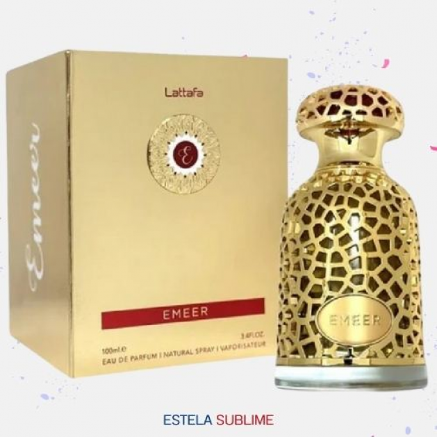 EMEER DE LATTAFA PERFUMES ES UNA FRAGANCIA DE LA FAMILIA OLFATIVA AMADERADA AROMÁTICA PARA HOMBRES Y MUJERES. ESTA FRAGANCIA ES NUEVA. EMEER SE LANZÓ EN 2024. LAS NOTAS DE SALIDA SON LIMÓN (LIMA ÁCIDA), BERGAMOTA, ESCLAREA Y BAYAS DE ENEBRO; LAS NOTAS DE CORAZÓN SON TÉ BLANCO, SÁNDALO, CARDAMOMO Y INCIENSO DE OLÍBANO (FRANQUINCIENSO); LAS NOTAS DE FONDO SON ÁMBAR GRIS, CEDRO, CACHEMIRA Y PACHULÍ.