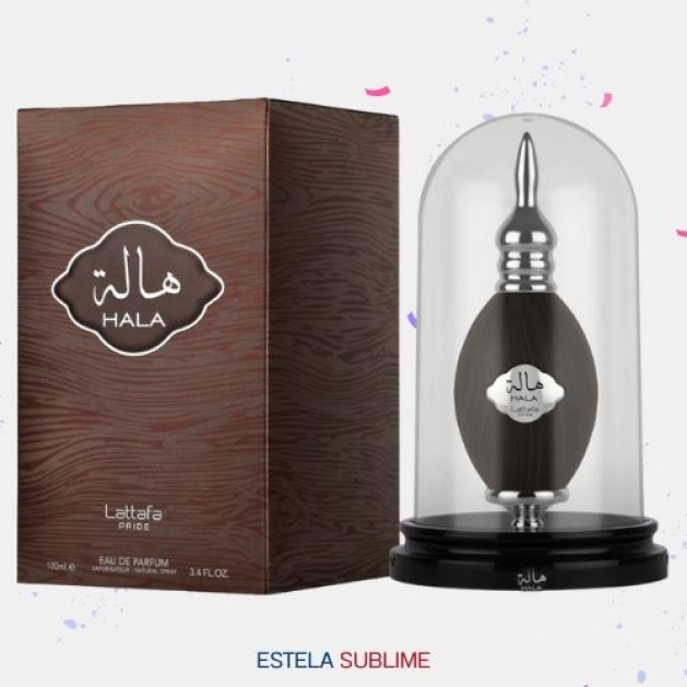 HALA DE LATTAFA PERFUMES ES UNA FRAGANCIA DE LA FAMILIA OLFATIVA ORIENTAL AMADERADA PARA HOMBRES Y MUJERES. ESTA FRAGANCIA ES NUEVA. HALA SE LANZÓ EN 2022. LAS NOTAS DE SALIDA SON PIMIENTA Y NUEZ MOSCADA; LAS NOTAS DE CORAZÓN SON CEDRO Y ÁMBAR; LAS NOTAS DE FONDO SON INCIENSO Y LÁDANO.