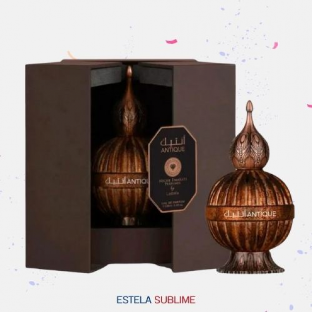 NICHE EMARATI ANTIQUE DE LATTAFA PERFUMES ES UNA FRAGANCIA DE LA FAMILIA OLFATIVA ORIENTAL AMADERADA PARA HOMBRES Y MUJERES. ESTA FRAGANCIA ES NUEVA. NICHE EMARATI ANTIQUE SE LANZÓ EN 2024. LAS NOTAS DE SALIDA SON HIGO, TÉ NEGRO, CARDAMOMO, LECHE Y COCO; LAS NOTAS DE CORAZÓN SON IRIS, VETIVER Y JAZMÍN; LAS NOTAS DE FONDO SON SÁNDALO, HABA TONKA, ÁMBAR, ALMIZCLE Y CARAMELO.