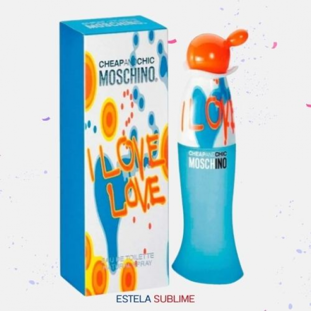 CHEAP & CHIC I LOVE LOVE DE MOSCHINO ES UNA FRAGANCIA DE LA FAMILIA OLFATIVA ALMIZCLE FLORAL AMADERADO PARA MUJERES. CHEAP & CHIC I LOVE LOVE SE LANZÓ EN 2004. LA NARIZ DETRÁS DE ESTA FRAGANCIA ES OLIVIER CRESP. LAS NOTAS DE SALIDA SON TORONJA (POMELO), NARANJA, LIMÓN (LIMA ÁCIDA) Y GROSELLA ROJA; LAS NOTAS DE CORAZÓN SON CAÑA DE AZÚCAR, ESPADAÑA, LIRIO DE LOS VALLES (MUGUETE), ROSA DE TÉ Y CANELA; LAS NOTAS DE FONDO SON ALMIZCLE, CEDRO Y MADERA DE THANAKA.