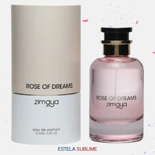 ROSE OF DREAMS DE ZIMAYA ES UNA FRAGANCIA DE LA FAMILIA OLFATIVA PARA MUJERES. LAS NOTAS DE SALIDA SON GROSELLAS NEGRAS, NOTAS VERDES Y DURAZNO (MELOCOTÓN); LAS NOTAS DE CORAZÓN SON RAÍZ DE LIRIO, HOJAS DE VIOLETA, ALMIZCLE BLANCO, CEDRO Y PIMIENTA NEGRA; LAS NOTAS DE FONDO SON ROSA Y IRIS.