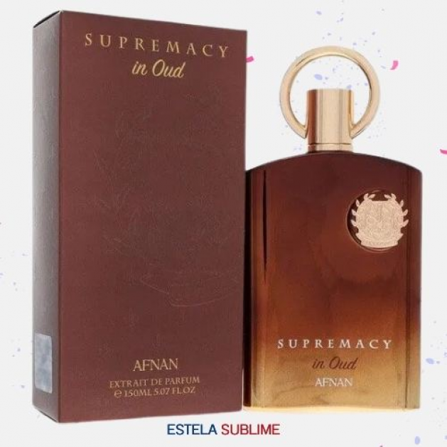 SUPREMACY IN OUD DE AFNAN ES UNA FRAGANCIA DE LA FAMILIA OLFATIVA AROMÁTICA ESPECIADA PARA HOMBRES Y MUJERES. SUPREMACY IN OUD SE LANZÓ EN 2021. LAS NOTAS DE SALIDA SON AZAFRÁN, NUEZ MOSCADA Y LAVANDA; LAS NOTAS DE CORAZÓN SON MADERA DE OUD Y NOTAS DULCES; LAS NOTAS DE FONDO SON PACHULÍ Y ALMIZCLE.