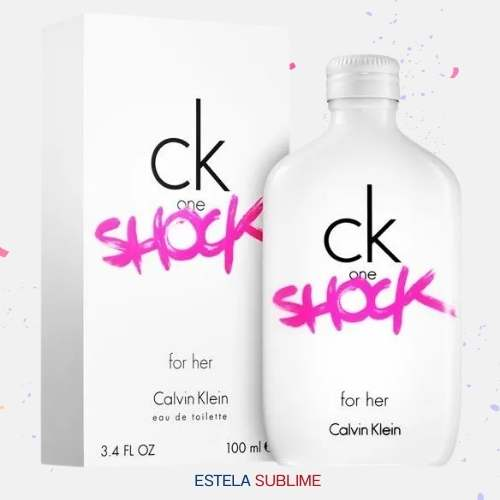 CK ONE SHOCK FOR HER DE CALVIN KLEIN ES UNA FRAGANCIA DE LA FAMILIA OLFATIVA ORIENTAL ESPECIADA PARA MUJERES. CK ONE SHOCK FOR HER SE LANZÓ EN 2011. CK ONE SHOCK FOR HER FUE CREADA POR ANN GOTTLIEB Y IFF. LAS NOTAS DE SALIDA SON FLOR DE PASIONARIA, AMAPOLA ROJA Y PEONÍA; LAS NOTAS DE CORAZÓN SON ZARZAMORA (FRAMBUESA NEGRA), CHOCOLATE MEXICANO, NARCISO Y JAZMÍN; LAS NOTAS DE FONDO SON VAINILLA, ALMIZCLE, ÁMBAR Y PACHULÍ.