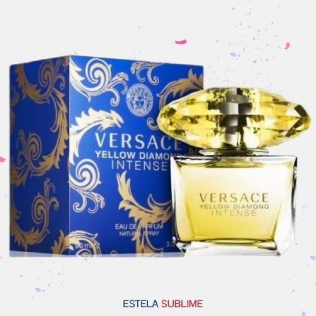 YELLOW DIAMOND INTENSE DE VERSACE ES UNA FRAGANCIA DE LA FAMILIA OLFATIVA FLORAL PARA MUJERES. YELLOW DIAMOND INTENSE SE LANZÓ EN 2014. LAS NOTAS DE SALIDA SON CIDRA, PERA, NEROLI Y BERGAMOTA; LAS NOTAS DE CORAZÓN SON FLOR DE AZAHAR DEL NARANJO, FRESIA, OSMANTO (OLIVO OLOROSO) Y JAZMÍN; LAS NOTAS DE FONDO SON MADERA DE GAIAC, ALMIZCLE, ÁMBAR Y BENJUÍ.