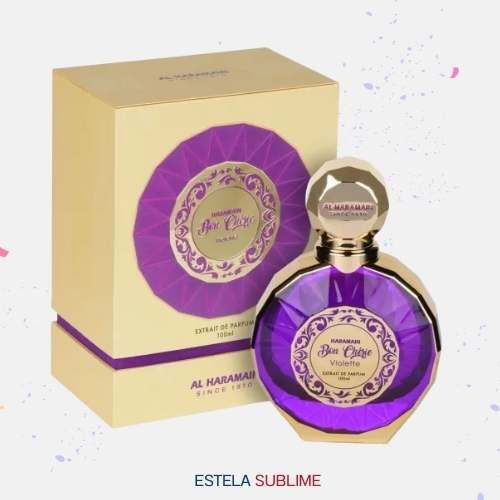BON CHERIE VIOLETTE DE AL HARAMAIN PERFUMES ES UNA FRAGANCIA DE LA FAMILIA OLFATIVA AMADERADA ESPECIADA PARA MUJERES. ESTA FRAGRANCIA ES NUEVA. BON CHERIE VIOLETTE SE LANZÓ EN 2024. LAS NOTAS DE SALIDA SON BERGAMOTA, LIMÓN (LIMA ÁCIDA), NUEZ MOSCADA Y CARDAMOMO; LAS NOTAS DE CORAZÓN SON LAVANDA, CEDRO, JENGIBRE Y NEROLI; LAS NOTAS DE FONDO SON ÁMBAR, VETIVER, INCIENSO DE OLÍBANO (FRANQUINCIENSO) Y ALMIZCLE.