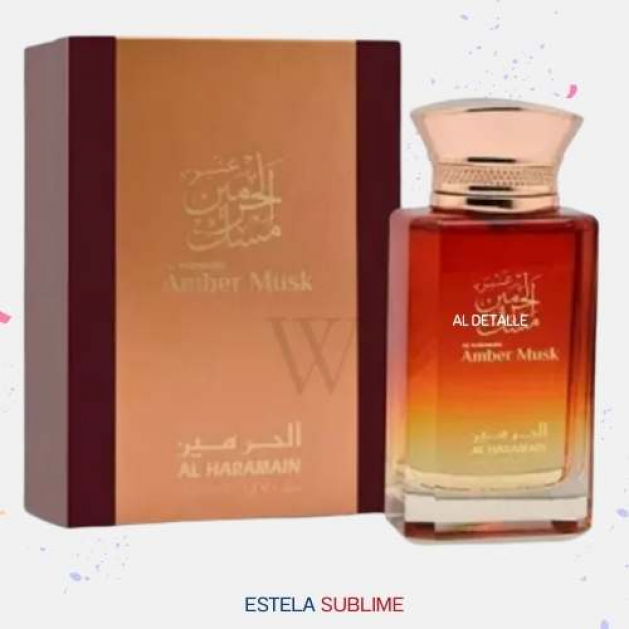 AMBER MUSK DE AL HARAMAIN PERFUMES ES UNA FRAGANCIA DE LA FAMILIA OLFATIVA PARA HOMBRES Y MUJERES. AMBER MUSK SE LANZÓ EN 2021. LAS NOTAS DE SALIDA SON ÁMBAR, MADERA DE OUD Y ALMIZCLE; LAS NOTAS DE CORAZÓN SON ROSA, FRAMBUESA, AZAFRÁN Y ABEDUL; LAS NOTAS DE FONDO SON AMBERWOOD, BENJUÍ Y GERANIO.