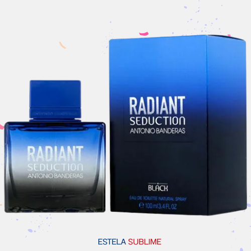 RADIANT SEDUCTION IN BLACK DE ANTONIO BANDERAS ES UNA FRAGANCIA DE LA FAMILIA OLFATIVA AROMÁTICA PARA HOMBRES. RADIANT SEDUCTION IN BLACK SE LANZÓ EN 2016. LAS NOTAS DE SALIDA SON TORONJA (POMELO), MENTA, LIMA (LIMÓN VERDE) Y MANDARINA; LAS NOTAS DE CORAZÓN SON TÉ NEGRO Y GERANIO; LAS NOTAS DE FONDO SON ÁMBAR, PACHULÍ Y CEDRO.