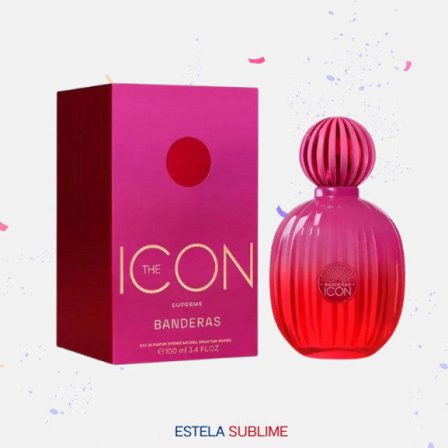 HE ICON SUPREME FOR WOMEN DE ANTONIO BANDERAS ES UNA FRAGANCIA DE LA FAMILIA OLFATIVA ORIENTAL FLORAL PARA MUJERES. ESTA FRAGRANCIA ES NUEVA. THE ICON SUPREME FOR WOMEN SE LANZÓ EN 2025. LAS NOTAS DE SALIDA SON FRAMBUESA Y MANDARINA; LAS NOTAS DE CORAZÓN SON NARDOS, ROSA Y FLOR DE AZAHAR DEL NARANJO; LAS NOTAS DE FONDO SON SÁNDALO, PACHULÍ, ÁMBAR Y HELIOTROPO.