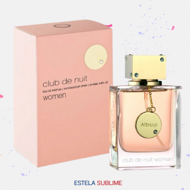 CLUB DE NUIT WOMAN DE ARMAF ES UNA FRAGANCIA DE LA FAMILIA OLFATIVA FLORAL FRUTAL PARA MUJERES. LAS NOTAS DE SALIDA SON NARANJA, BERGAMOTA, TORONJA (POMELO) Y DURAZNO (MELOCOTÓN); LAS NOTAS DE CORAZÓN SON ROSA, JAZMÍN, LICHI Y GERANIO; LAS NOTAS DE FONDO SON PACHULÍ, ALMIZCLE, VAINILLA Y VETIVER.