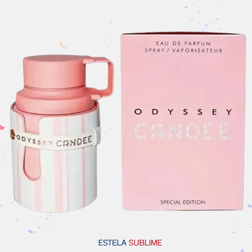 ODYSSEY CANDEE DE ARMAF ES UNA FRAGANCIA DE LA FAMILIA OLFATIVA PARA MUJERES. ESTA FRAGRANCIA ES NUEVA. ODYSSEY CANDEE SE LANZÓ EN 2024. LAS NOTAS DE SALIDA SON FRESA, FRAMBUESA, GERANIO, DURAZNO (MELOCOTÓN) Y BERGAMOTA; LAS NOTAS DE CORAZÓN SON CARAMELO, JAZMÍN Y MARACUYÁ (FRUTA DE LA PASIÓN); LAS NOTAS DE FONDO SON PACHULÍ, ALMIZCLE Y ÁMBAR.