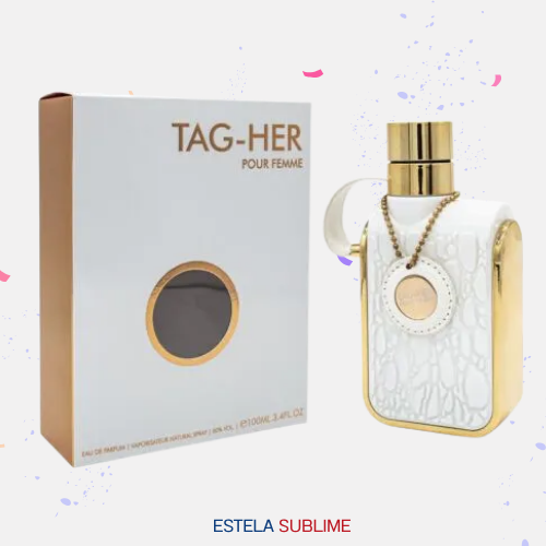 TAG-HER DE ARMAF ES UNA FRAGANCIA DE LA FAMILIA OLFATIVA ORIENTAL FLORAL PARA MUJERES. LAS NOTAS DE SALIDA SON BERGAMOTA, NEROLI Y PIMIENTA ROSA; LAS NOTAS DE CORAZÓN SON FLOR DE AZAHAR DEL NARANJO, JAZMÍN, ROSA, MADRESELVA Y IRIS; LAS NOTAS DE FONDO SON VAINILLA, ALMIZCLE, CARAMELO Y LÁDANO.