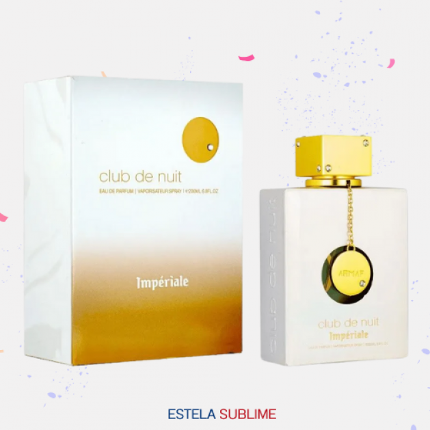 CLUB DE NUIT WHITE IMPERIALE DE ARMAF ES UNA FRAGANCIA DE LA FAMILIA OLFATIVA PARA MUJERES. CLUB DE NUIT WHITE IMPERIALE SE LANZÓ EN 2022. LAS NOTAS DE SALIDA SON LICHI, BERGAMOTA Y NUEZ MOSCADA; LAS NOTAS DE CORAZÓN SON ROSA TURCA, VAINILLA, ALMIZCLE Y PEONÍA; LAS NOTAS DE FONDO SON VAINILLA, INCIENSO, CACHEMIRA Y CEDRO.