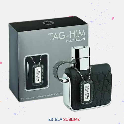 TAG-HIM DE ARMAF ES UNA FRAGANCIA DE LA FAMILIA OLFATIVA AMADERADA ESPECIADA PARA HOMBRES. LAS NOTAS DE SALIDA SON TORONJA (POMELO), LIMÓN (LIMA ÁCIDA), BERGAMOTA Y PIMIENTA ROSA; LAS NOTAS DE CORAZÓN SON JENGIBRE, MENTA, LAVANDA Y NUEZ MOSCADA; LAS NOTAS DE FONDO SON VETIVER, PACHULÍ, SÁNDALO Y CEDRO.