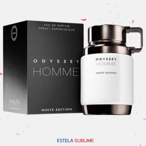 ODYSSEY HOMME WHITE EDITION DE ARMAF ES UNA FRAGANCIA DE LA FAMILIA OLFATIVA ORIENTAL FOUGÈRE PARA HOMBRES. LAS NOTAS DE SALIDA SON PIMIENTA ROSA, YUZU Y TORONJA (POMELO); LAS NOTAS DE CORAZÓN SON HOJAS DE VIOLETA Y NOTAS MARINAS; LAS NOTAS DE FONDO SON ÁMBAR, AMBERWOOD Y MADERA DE GAIAC.