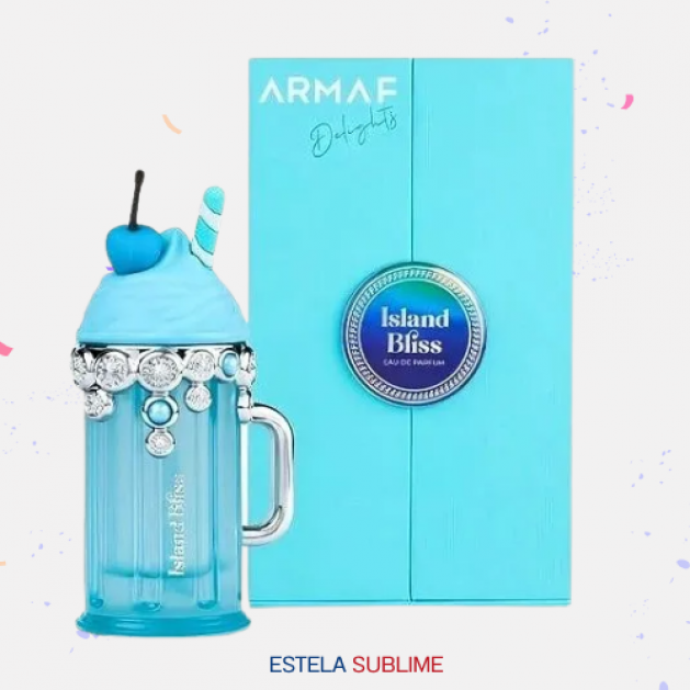 ISLAND BLISS DE ARMAF ES UNA FRAGANCIA DE LA FAMILIA OLFATIVA FLORAL FRUTAL GOURMAND PARA MUJERES. ESTA FRAGRANCIA ES NUEVA. ISLAND BLISS SE LANZÓ EN 2024. LAS NOTAS DE SALIDA SON BAYAS SILVESTRES Y NOTAS VERDES; LAS NOTAS DE CORAZÓN SON COCO, FLOR DE AZAHAR DEL NARANJO, NENÚFAR (LIRIO DE AGUA) Y LACTONAS; LAS NOTAS DE FONDO SON VAINILLA, HABA TONKA Y ALMIZCLE.