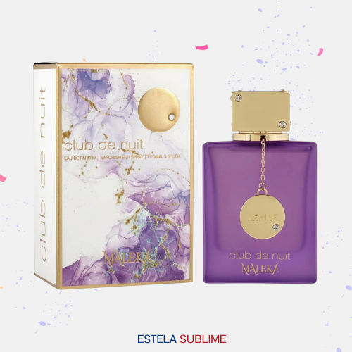 CLUB DE NUIT MALEKA DE ARMAF ES UNA FRAGANCIA DE LA FAMILIA OLFATIVA FLORAL FRUTAL PARA MUJERES. ESTA FRAGRANCIA ES NUEVA. CLUB DE NUIT MALEKA SE LANZÓ EN 2025. LA NARIZ DETRÁS DE ESTA FRAGRANCIA ES OLIVIER CRESP. LAS NOTAS DE SALIDA SON LICHI, BERGAMOTA Y PIMIENTA ROSA; LA NOTA DE CORAZÓN ES RAÍZ DE LIRIO; LAS NOTAS DE FONDO SON PRALINÉ, SÁNDALO Y AMBROXAN.