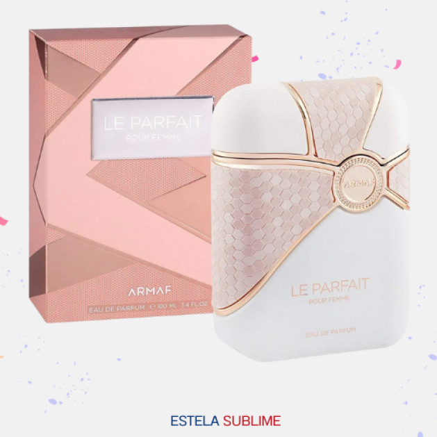LE PARFAIT POUR FEMME DE ARMAF ES UNA FRAGANCIA DE LA FAMILIA OLFATIVA CHIPRE FLORAL PARA MUJERES. LAS NOTAS DE SALIDA SON JAZMÍN, NEROLI Y MANDARINA; LAS NOTAS DE CORAZÓN SON MADRESELVA, NARDOS Y LIRIO DE LOS VALLES (MUGUETE); LAS NOTAS DE FONDO SON ÁMBAR, ALMIZCLE Y PACHULÍ.