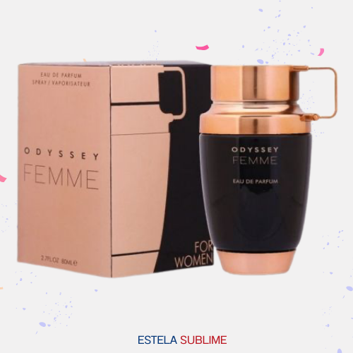 ODYSSEY FEMME DE ARMAF ES UNA FRAGANCIA DE LA FAMILIA OLFATIVA FLORAL PARA MUJERES. ODYSSEY FEMME SE LANZÓ EN 2020. LAS NOTAS DE SALIDA SON CIRUELA, GARDENIA, MIEL, BERGAMOTA Y NARDOS; LAS NOTAS DE CORAZÓN SON LIRIO DE LOS VALLES (MUGUETE), JAZMÍN, ROSA Y AZAFRÁN; LAS NOTAS DE FONDO SON CACAO, HABA TONKA Y ALMIZCLE.