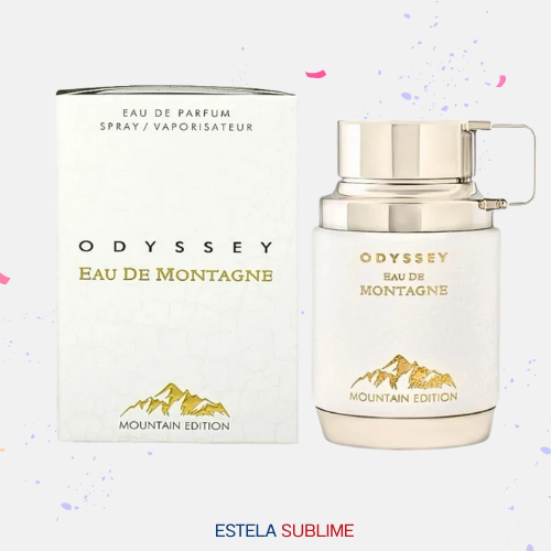 ODYSSEY EAU DE MONTAGNE DE ARMAF ES UNA FRAGANCIA DE LA FAMILIA OLFATIVA ORIENTAL VAINILLA PARA HOMBRES Y MUJERES. ESTA FRAGRANCIA ES NUEVA. ODYSSEY EAU DE MONTAGNE SE LANZÓ EN 2025. LAS NOTAS DE SALIDA SON LACTONAS, ALMENDRA Y ESPECIAS; LA NOTA DE CORAZÓN ES FLORES BLANCAS; LAS NOTAS DE FONDO SON SÁNDALO, VAINILLA, ALMIZCLE Y CACAO.