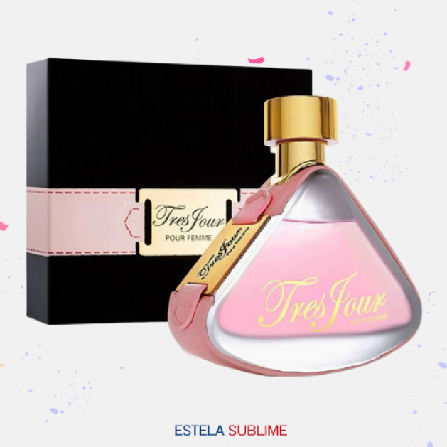 TRES JOUR DE ARMAF ES UNA FRAGANCIA DE LA FAMILIA OLFATIVA ALMIZCLE FLORAL AMADERADO PARA MUJERES. LAS NOTAS DE SALIDA SON TÉ VERDE, LIMÓN (LIMA ÁCIDA) Y NEROLI; LAS NOTAS DE CORAZÓN SON FLORES BLANCAS, JAZMÍN Y NARDOS; LAS NOTAS DE FONDO SON ALMIZCLE, CEDRO, PACHULÍ Y VAINILLA.