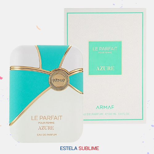 LE PARFAIT AZURE POUR FEMME DE ARMAF ES UNA FRAGANCIA DE LA FAMILIA OLFATIVA ORIENTAL FLORAL PARA MUJERES. LAS NOTAS DE SALIDA SON BERGAMOTA, ROSA, CARDAMOMO Y DURAZNO (MELOCOTÓN); LAS NOTAS DE CORAZÓN SON JAZMÍN, OSMANTO (OLIVO OLOROSO), MANZANA, NARDOS Y CIRUELA; LAS NOTAS DE FONDO SON SÁNDALO, VAINILLA Y TABACO.