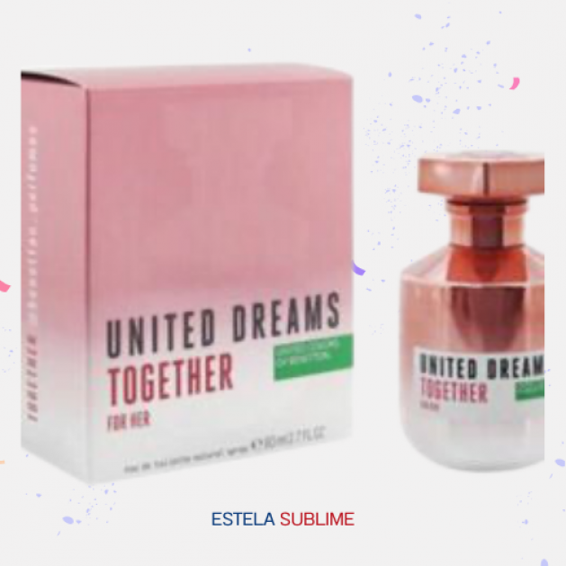 UNITED DREAMS TOGETHER FOR HER DE BENETTON ES UNA FRAGANCIA DE LA FAMILIA OLFATIVA FLORAL FRUTAL PARA MUJERES. UNITED DREAMS TOGETHER FOR HER SE LANZÓ EN 2019. LAS NOTAS DE SALIDA SON GROSELLA ESPINOSA, DURAZNO (MELOCOTÓN) Y BERGAMOTA; LAS NOTAS DE CORAZÓN SON MAGNOLIA, ROSA, PIMIENTA ROSA Y JAZMÍN; LAS NOTAS DE FONDO SON VAINILLA, PRALINÉ, ALMIZCLE Y CEDRO.