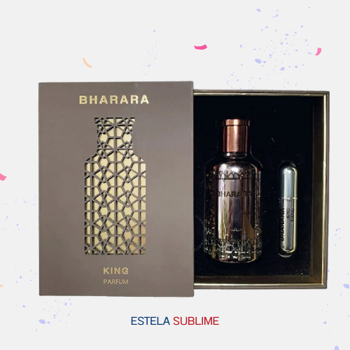 KING DE BHARARA ES UNA FRAGANCIA DE LA FAMILIA OLFATIVA AROMÁTICA PARA HOMBRES. KING SE LANZÓ EN 2021. LAS NOTAS DE SALIDA SON NARANJA, BERGAMOTA Y LIMÓN (LIMA ÁCIDA); LA NOTA DE CORAZÓN ES NOTAS AFRUTADAS; LAS NOTAS DE FONDO SON VAINILLA, ALMIZCLE BLANCO Y ÁMBAR.