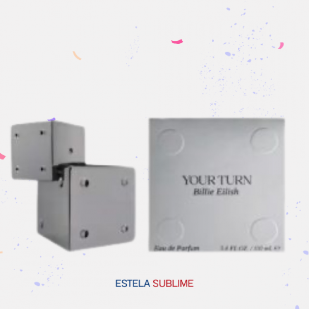 YOUR TURN DE BILLIE EILISH ES UNA FRAGANCIA DE LA FAMILIA OLFATIVA ALMIZCLE AMADERADO FLORAL PARA HOMBRES Y MUJERES. ESTA FRAGRANCIA ES NUEVA. YOUR TURN SE LANZÓ EN 2025. LAS NOTAS DE SALIDA SON CARDAMOMO, JENGIBRE Y BERGAMOTA; LAS NOTAS DE CORAZÓN SON AGUA DE COCO, DURAZNO (MELOCOTÓN) Y JAZMÍN DE NOCHE; LAS NOTAS DE FONDO SON SÁNDALO AUSTRALIANO, ALMIZCLE Y ISO E SUPER.