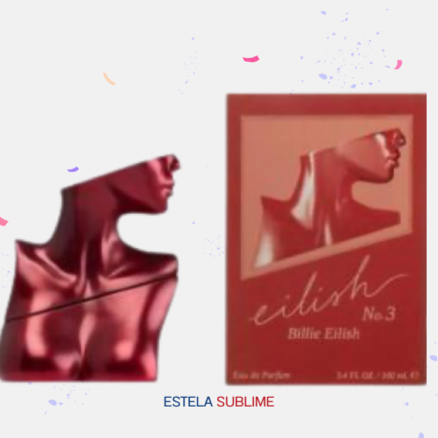 EILISH NO.3 DE BILLIE EILISH ES UNA FRAGANCIA DE LA FAMILIA OLFATIVA ORIENTAL AMADERADA PARA HOMBRES Y MUJERES. EILISH NO.3 SE LANZÓ EN 2023. LA NARIZ DETRÁS DE ESTA FRAGRANCIA ES LINDA CHINERY. LAS NOTAS DE SALIDA SON PIMIENTA ROSA, TORONJA (POMELO) Y JAZMÍN; LAS NOTAS DE CORAZÓN SON ABETO, CEDRO Y AZAFRÁN; LAS NOTAS DE FONDO SON ALMIZCLE, ÁMBAR Y MUSGO DE ROBLE.
