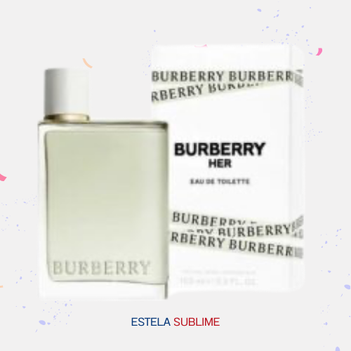 BURBERRY HER EAU DE TOILETTE DE BURBERRY ES UNA FRAGANCIA DE LA FAMILIA OLFATIVA FLORAL FRUTAL PARA MUJERES. BURBERRY HER EAU DE TOILETTE SE LANZÓ EN 2022. LAS NOTAS DE SALIDA SON PERA, FRESA, GROSELLAS NEGRAS Y PIMIENTA ROSA; LAS NOTAS DE CORAZÓN SON PEONÍA, ROSA, LIRIO DE LOS VALLES (MUGUETE) Y MADRESELVA; LAS NOTAS DE FONDO SON ALMIZCLE Y CEDRO.