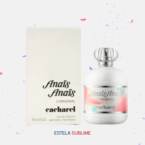 ANAIS ANAIS L’ORIGINAL EAU DE TOILETTE DE CACHAREL ES UNA FRAGANCIA DE LA FAMILIA OLFATIVA FLORAL PARA MUJERES. ANAIS ANAIS L’ORIGINAL EAU DE TOILETTE SE LANZÓ EN 2014. LAS NOTAS DE SALIDA SON JACINTO Y MADRESELVA; LAS NOTAS DE CORAZÓN SON AZUCENA, LIRIO DE LOS VALLES (MUGUETE), JAZMÍN, YLANG-YLANG Y ROSA; LAS NOTAS DE FONDO SON MUSGO, ALMIZCLE, VETIVER, SÁNDALO Y GROSELLAS NEGRAS.
