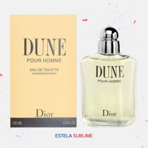 DUNE POUR HOMME DE DIOR ES UNA FRAGANCIA DE LA FAMILIA OLFATIVA ALMIZCLE AMADERADO FLORAL PARA HOMBRES. DUNE POUR HOMME SE LANZÓ EN 1997. DUNE POUR HOMME FUE CREADA POR OLIVIER CRESP Y JEAN-PIERRE BETHOUART. LAS NOTAS DE SALIDA SON HOJAS DE HIGUERA, CASIS (GROSELLERO NEGRO), SALVIA Y ALBAHACA; LAS NOTAS DE CORAZÓN SON CORTEZA DE LA HIGUERA, ROSA Y RESEDA (MIÑONETA); LAS NOTAS DE FONDO SON SÁNDALO, CEDRO, HABA TONKA Y VAINILLA.