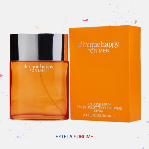 CLINIQUE HAPPY DE CLINIQUE ES UNA FRAGANCIA DE LA FAMILIA OLFATIVA CÍTRICA AROMÁTICA PARA HOMBRES. CLINIQUE HAPPY SE LANZÓ EN 1999. LAS NOTAS DE SALIDA SON MANDARINA, LIMA (LIMÓN VERDE), NOTAS MARINAS, LIMÓN (LIMA ÁCIDA) Y NOTAS VERDES; LAS NOTAS DE CORAZÓN SON FRESIA, JAZMÍN, LIRIO DE LOS VALLES (MUGUETE) Y ROSA; LAS NOTAS DE FONDO SON CIPRÉS, ALMIZCLE, CEDRO Y MADERA DE GAIAC.